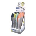 Milan P1 Silver Expositor de 20 Boligrafos de Bola Retractiles - Punta Redonda 1mm - Cuerpo Plateado con Clip de Colores Surtido