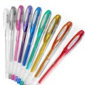 La mejor gama de roller de tinta gel en colores efecto metálico, junto a un excelente diseño. Punta de acero inoxidable. Bola de 0.8 mm ø de carburo de tungsteno. Cuerpo de plástico. Tinta pigmentada resistente al agua y a la luz. Tiene una duración de 5 años. Clip exclusivo uni-ball. Escribe sobre papel negro y blanco.