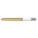Bic 4 Colours Shine Boligrafo de Bola Retractil - Punta de 1mm - Trazo de 0.4mm - Tinta con Base de Aceite - Cuerpo Oro/Blanco -