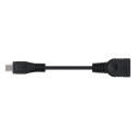 Cable USB 2.0 OTG con conector tipo Micro USB B macho en un extremo y tipo USB A hembra en el otro.