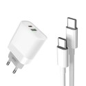 XO L64 Pack Cargador de Corriente 1x USB-A, 1x USB-C 18W Carga Rapida 3.0 + Cable USB-C a USB-C 1m