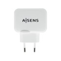 AISENS® - Cargador USB 17W 5V/3.4A, 2xUSB con control AI, Blanco