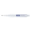 Boligrafo corrector de 7 ml con punta metálica. Al presionar la parte central, se incrementa el flujo del fluido. Agitar antes de usar.