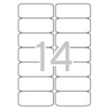 Etiquetas translúcidas cantos romos tamaño 99,1 x 38,1 mm con adhesivo permanente. Pack con 20 hojas (280 etiquetas).