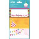 Apli Etiquetas Adhesivas Happy Birthday - Tamaño 76x39mm - 9 Etiquetas en 3 Hojas - Adhesivo Permanente de Alta Calidad - Ideal