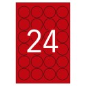 Las etiquetas rojo flúor circulares tamaño Ø 45,0 mm con adhesivo permanente son un producto ideal para destacar objetos, resaltar información relevante o marcar envíos. Este pack incluye 20 hojas con un total de 480 etiquetas. Las características de estas etiquetas adhesivas son las siguientes: