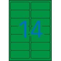 Las etiquetas verdes con cantos romos y tamaño de 99,1 x 38,1 mm con adhesivo permanente son un producto ideal para destacar la información en sobres de envío, paquetes u objetos. Cada pack contiene 20 hojas con un total de 280 etiquetas. La excelente calidad de impresión en impresoras inkjet, láser o fotocopiadoras garantiza una impresión nítida y clara. A continuación, se detallan las características y especificaciones del producto: