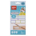 Etiquetas plastificadas con diseños y tamaños surtidos, ideales para marcar libros, lápices, calculadoras y cualquier otro objeto de forma fácil y rápida. Cada bolsa contiene 35 etiquetas de alta calidad y durabilidad.