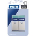 Milan Nata 520 Artist Pack de 2 Gomas de Borrar Rectangulares - Plastico - Faja de Carton Blanca - No Daña el Papel - Color Verd