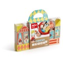 El juego de bloques de madera apilables modelo Circo es un producto ideal para niños a partir de 12 meses. Cada pack contiene 16 piezas y una bolsa de tela con cordón para guardarlas. Los bloques de madera de pino de alta calidad tienen bordes redondeados e impresión a todo color en ambas caras, lo que los hace especialmente resistentes a golpes y caídas.
