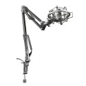 Brazo ajustable de escritorio para poner el micrófono en la posición más cómoda durante retransmisiones o vlogging.