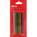 Apli Recambio de Barras de Adhesivo Termofusible - Ø7.5mmx10cm - Colores Surtidos con Purpurina - Precision y Limpeza - Compatib