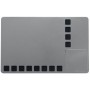 Una pizarra blanca magnética pequeña con cuadrículas de espuma para fijar notas Nobo de tamaño 610x390 mm. Esta pizarra multifuncional metálica sin marco cuenta con cuadrados de espuma negra para colocar notas y un espacio de almacenamiento integrado para rotuladores y borradores de pizarra.