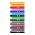 Rotuladores de punta cónica 5 mm Ø que permite realizar trazos desde 0,75 mm a 3 mm. Punta resistente a los golpes y a la presión. Tinta a base de agua que proporciona unos colores brillantes de fácil aplicación y mezclables entre sí. Por su tipo de punta se recomiendan para rellenar superficies de color. Puede lavarse fácilmente sobre la mayoría de tejidos(poner la prenda en remojo en agua fría durante una hora y lavar a máquina, también con agua fría). Con capuchón de seguridad ventilado. 24 colores