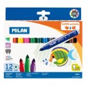 Milan Pack de 12 Rotuladores Super Lavables Maxi - Punta Conica 7.5mm - Tinta al Agua - Lavable - Colores Surtidos